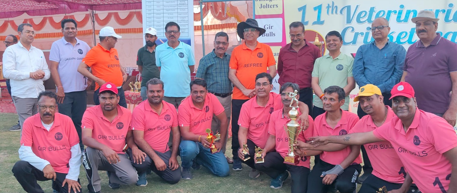 बीकानेर, स्व.डॉ. शशांक मनोहर की स्मृति में दो दिवसीय 11वीं वेटरिनेरियन क्रिकेट लीग का सार्दुल क्लब मैदान में रविवार को समापन हुआ। कार्यक्रम के मुख्य अतिथि वेटरनरी विश्वविद्यालय, बीकानेर के कुलगुरु डॉ. सुमंत व्यास ने विजेता टीम मारवाड़ टाईगर्स को विजेता ट्रॉफी भेट की। इस दौरान अधिष्ठाता वेटरनरी महाविद्यालय, बीकानेर प्रो. बी.एन. श्रृंगी एवं संयुक्त निदेशक, पशुपालन विभाग, बीकानेर, राजस्थान सरकार डॉ. कुलदीप चौधरी विशिष्ट अतिथि के रूप में उपस्थित रहे। कार्यक्रम के आयोजन कर्ता डॉ. रजनीश गुप्ता ने बताया कि इस क्रिकेट प्रतियोगिता में राजस्थान के विभिन्न जिलों में कार्यरत वेटरनरी ऑफिसर एवं वेटरनरी विश्वविद्यालय के फैकल्टी सदस्य शामिल रहे। राजुवास रोयल्स, मारवाड़ टाईगर्स, गिर बुल्स, जयगढ़ जायन्टस और जुनागढ़ जोल्टरस नामक कुल पांच अलग-अलग टीमों में ये प्रतियोगिता आयोजित हुई और इस लीग में मारवाड़ टाईगर्स विजेता और गिर बुल्स उपविजेता रही जिन्हे ट्रॉफी देकर सम्मानित किया गया। इस क्रिकेट लीग के आयोजन में डॉ. विक्रम सिंह शेखावत, डॉ. तपेश माथुर, डॉ. त्रिभुवन सिंह शेखावत, प्रो. राजेश कुमार धूड़िया, प्रो. प्रवीण बिश्नोई, डॉ. रामजीलाल मीणा, डॉ. संदीप खरे का आयोजन कर्ता के रूप में विशेष सहयोग रहा।