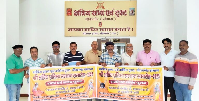 बीकानेर,क्षत्रिय सभा एवं ट्रस्ट बीकानेर द्वारा आगामी 2 अक्टूबर को विभिन्न कार्यक्रमों के साथ...