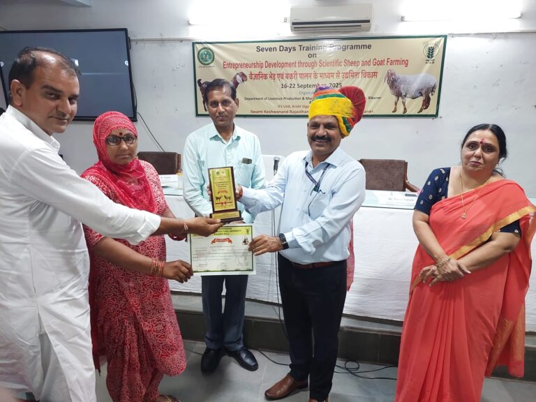 बीकानेर,वैज्ञानिक भेड़ बकरी पालन के माध्यम से उद्यमिता विकास पर सात दिवसीय प्रशिक्षण सोमवार...