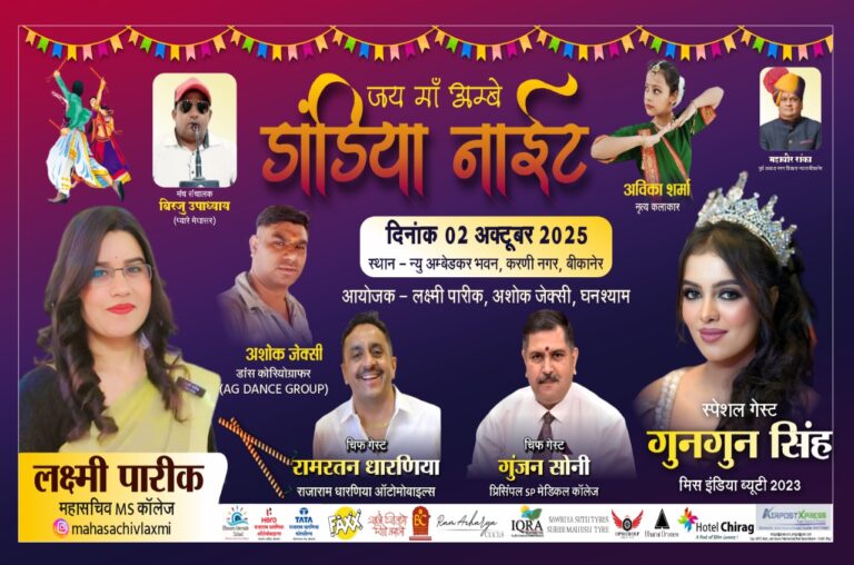 बीकानेर,आगामी 2 अक्टूबर को न्यू अंबेडकर भवन, करनी नगर में भव्य डांडिया महोत्सव का...