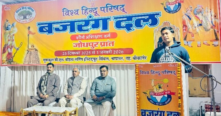 बीकानेर,सींथल में चल रहे बजरंग दल के सात दिवसीय वर्ग को संबोधित करते हुए...