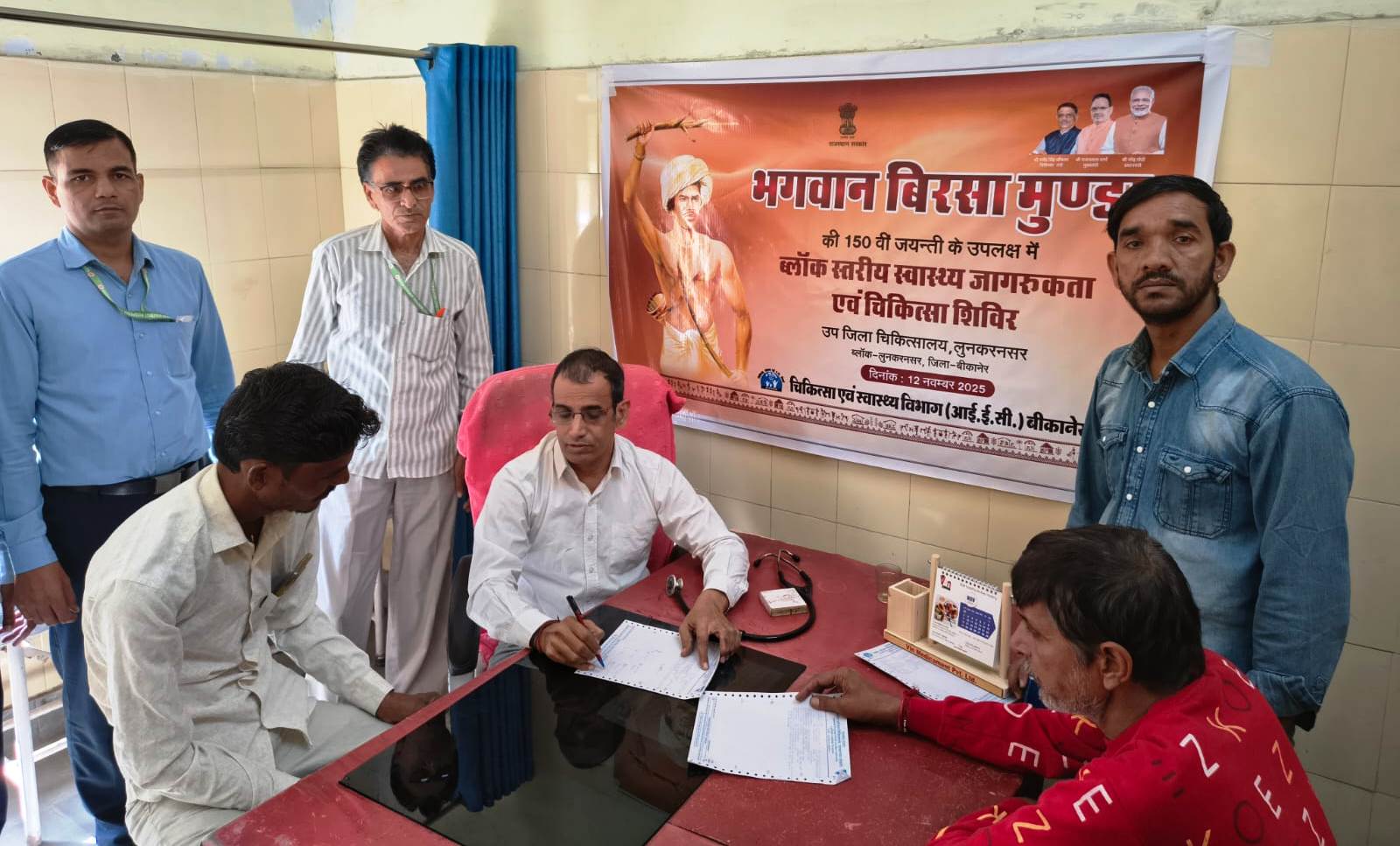 बीकानेर,भगवान बिरसा मुंडा की 150वीं जयंती के उपलक्ष में जिले भर में चिकित्सा एवं स्वास्थ्य विभाग की ओर से ब्लॉक स्तर पर स्वास्थ्य जागरूकता एवं चिकित्सा शिविरों का आयोजन किया गया। जिले के 9 ब्लॉक के 9 अस्पतालों में आयोजित इन शिविरों में 6,211 लाभार्थियों ने स्वास्थ्य लाभ लिया।