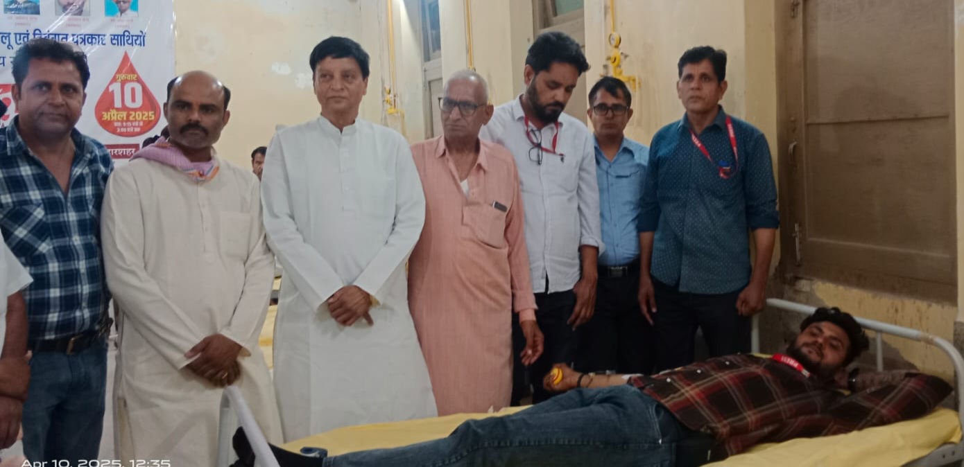 रक्तदान की शुरुआत नरेंद्र शर्मा द्वारा की गई। इसके पश्चात डॉ. चन्द्रभान जांगीड़, डॉ. चंदन मोटसरा, डॉ. कमलेश भारतीय, ईएमटी संजय खीचड़, जितेंद्र सहित कुल 65 लोगों ने रक्तदान किया।