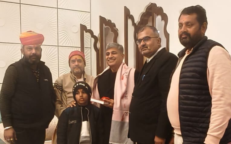 बीकानेर,उधोगपति भामाशाह नरसी कुलरिया को साध्वी ऋतंभरा जी के कार्यक्रम का पिले चावल का कलश भेट कर दिया 28 फरवरी को विशाल हिंदू धर्म सभा नरसी विला सिलवा मुलवास नोखा में साध्वी ऋतंभरा के सानिध्य में पुज्या दिदी मां साध्वी ऋतंभरा की मधुर वाणी से बीकानेर की पावन धरा पर सनातन धर्म रक्षा समिति बीकानेर द्वारा 22 से 28 फरवरी को होने वाली श्रीमद् भागवत कथा 51 कुण्डिय विश्वशांति महायज्ञ कार्यक्रम का निमंत्रण आज उधोगपति भामाशाह नरसी कुलरिया को पिले चावल का कलश भेट कर दिया इसके साथ ही एडवोकेट बजरंग छींपा, सनातन धर्म रक्षा समिति बीकानेर संस्थापक सुरेन्द्र सिंह राजपुरोहित, गोपाल भादाणी, यज्ञाचार्य पंडित सिद्धार्थ पुरोहित ने सोल ओढ़ाकर और श्रीमद्भागवत गीता भेट कर उधोगपति नरसी कुलरिया का सम्मान किया और निमंत्रण दिया