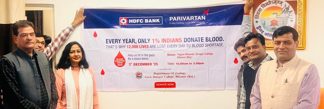 बीकानेर,डूंगर महाविद्यालय अपने सामाजिक सरोकारों के प्रति जागरूकता के क्रम में 3 दिसंबर 2025 को विशाल रक्तदान शिविर का आयोजन करने जा रहा है । इसके सफल संचालन के लिए आज एक आवश्यक प्राचार्य कक्ष में बैठक आहूत की गई।बैठक को संबोधित करते हुए प्रोफेसर राजेंद्र पुरोहित ने सभी समितियों को आवश्यक दिशा निर्देश दिए और इसको सफल बनाने हेतु उच्चतम प्रयासों की अपील की।