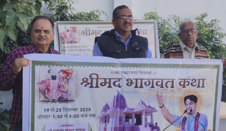बीकानेर, जस्सूसर गेट के बाहर भगवती फाऊंडेशन कोलकाता की ओर से संचालित से दुर्गा माता मंदिर में 19 से 25 दिसंबर दोपहर 1:30 बजे से शाम 5:00 बजे तक संगीत में भागवत कथा होगी। कथा का वाचन विवेचन वृंदावन के आचार्य विक्रम करेंगे। मंदिर के संस्थापक प्रकाश कुमार मोहता ने वर्चुअल माध्यम से बुधवार को संवाददाताओं को बताया कि आचार्य विक्रम जी देश के विभिन्न स्थानों पर कथा कर चुके हैं। दुर्गा माता मंदिर के पीछे मोहता गार्डन में पहली बार होने वाली भागवत कथा के लिए 2000 श्रद्धालुओं के बैठने की व्यवस्था की गई है। कोलकाता आए पन्नालाल कोठारी और मंदिर के व्यवस्थापक पूर्व कैप्टन भीवाराम ने बताया की भागवत कथा के दौरान 22 को नंद उत्सव 23 को गिरिराज पूजा, 24 को श्री कृष्ण रुक्मणी विवाह पर उत्सव मनाया जाएगा तथा की पूर्णाहुति हवन के साथ 25 दिसंबर को होगी। कथा के प्रथम दिन मंदिर परिसर में कलश यात्रा निकाली जाएगी मंदिर के पंडित वृंदावन के अमित कुमार मिश्रा और अंकित कुमार मिश्रा पूजन कर कलश की प्रतिष्ठा करवाएंगे।