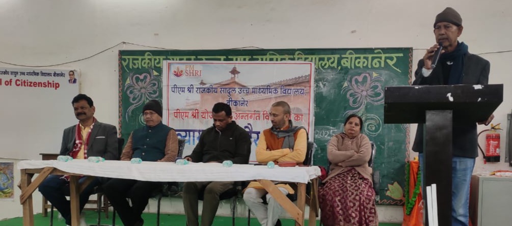 बीकानेर,पीएम श्री राजकीय सादुल उच्च माध्यमिक विद्यालय, बीकानेर में राष्ट्रीय आविष्कार अभियान के अंतर्गत अंतर्राष्ट्रीय विशेषज्ञ वार्ता का आयोजन किया गया। कार्यक्रम के मुख्य वक्ता वास्तुविद आरके सुतार और ईसीबी के रजिस्ट्रार प्रोफेसर अमित सोनी थे। मुख्य अतिथि साहित्यकार पत्रकार हरीश बी शर्मा और शिक्षाविद मधुसूदन व्यास थे।