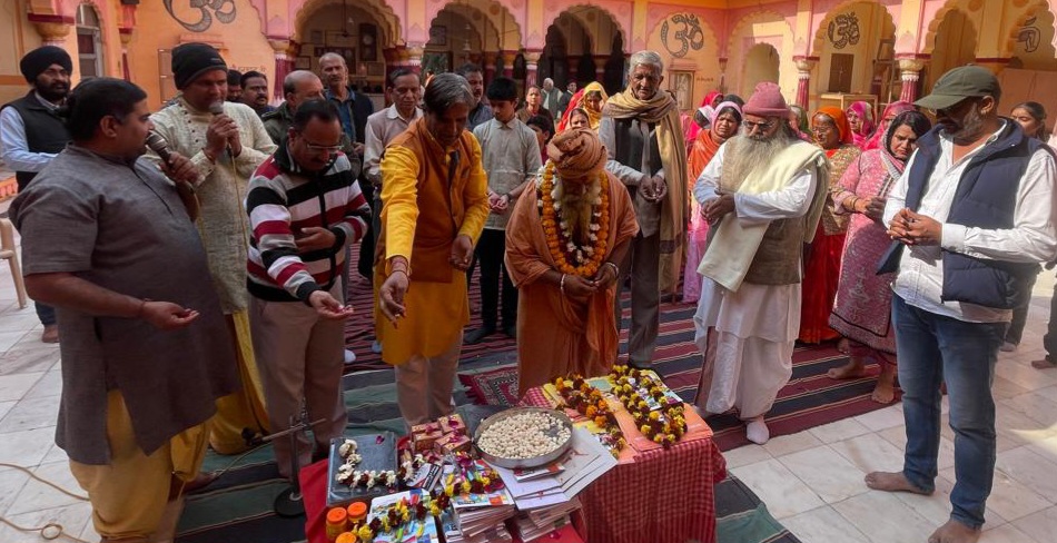 वैदिक मंत्रोच्चार प अशोक शर्मा, भवानी सेवग कथा पीठाधीश्वर मुरली मनोहर व्यास यज्ञ प्रसाद शर्मा नारायण शर्मा ने कर सस्वर पूजन कराया