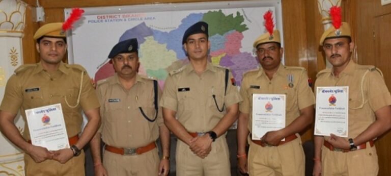 बीकानेर,जिला पुलिस अधीक्ष मृदुल कच्छावा ने उत्कृष्ट कार्य करने वाले तीन कानिस्टेबल को कानिस्टेबल...