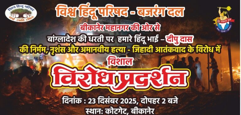 बीकानेर,विश्व हिंदू परिषद के महानगर अध्यक्ष विजय कोचर ने बीकानेर मे आतंकवाद का पुतला...