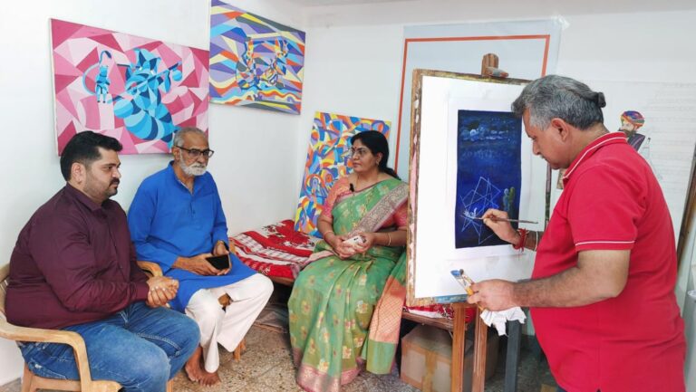 बीकानेर,शब्द मय रंग संस्थान में कला श्रृंखला-7 मे कविता पर चित्रण करते हुवे चित्रकार...