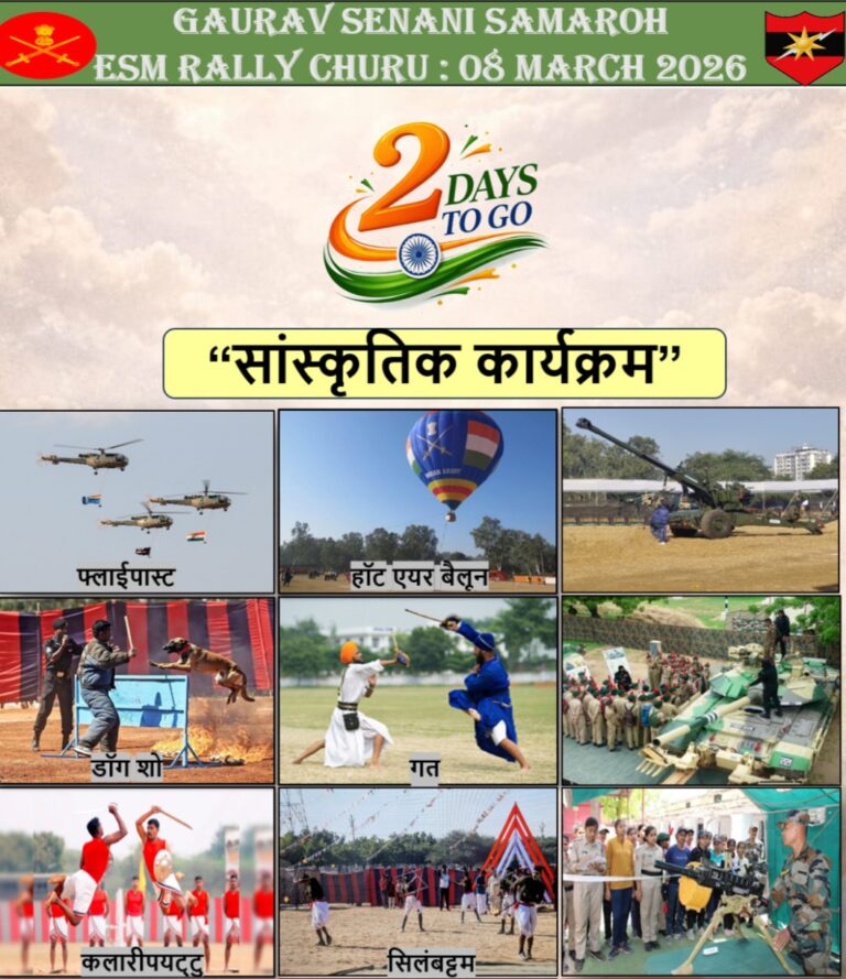 बीकानेर,चूरू सप्त शक्ति कमान की रणबांकुरा डिवीजन द्वारा 8 मार्च 2026 को चूरू के...