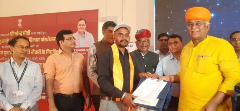 बीकानेर,अजमेर स्थित कायड़ विश्राम स्थली में आयोजित प्रदेश स्तरीय रोजगार उत्सव के दौरान प्रधानमंत्री...