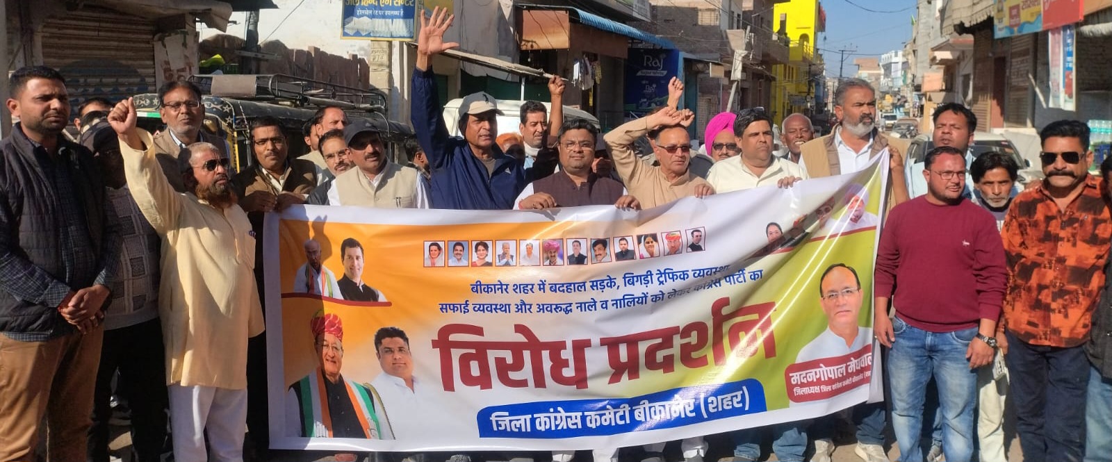 बीकानेर,बीकानेर शहर में पिछले काफी समय से सड़क नाली और बिजली जैसी समस्याओं से जूझ रही जनता के लिए आज शहर जिला कांग्रेस कमेटी ने जिलाध्यक्ष मदनगोपाल मेघवाल के नेतृत्व में कुचीलपुरा क्षेत्र में विरोध प्रदर्शन किया