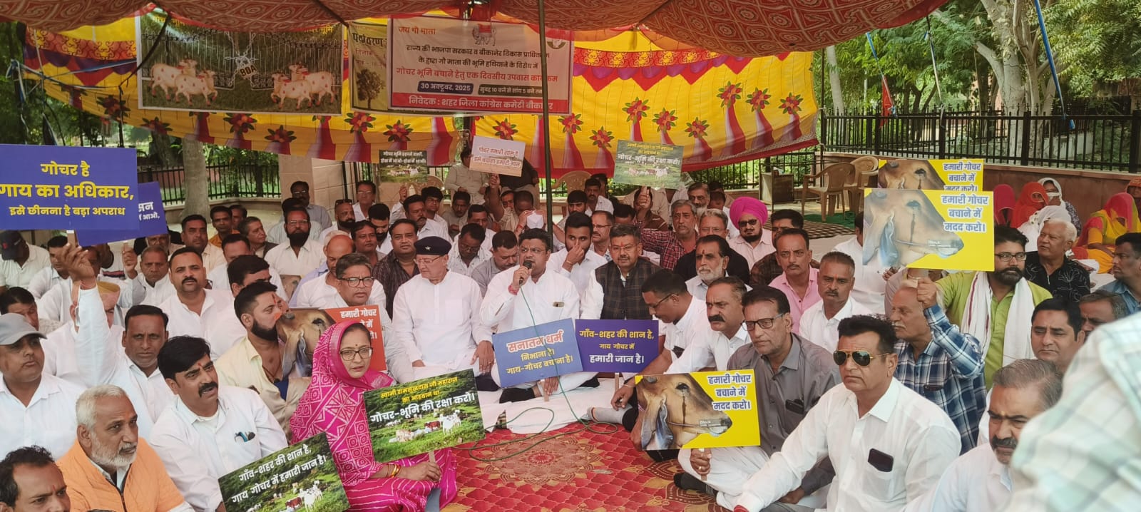 राजस्थान सरकार को समझना चाहिए ” कि पूर्व मंत्री बुलाकीदास कल्ला ये आरोप क्यों लगा रहे है कि गोचर को अराजीराज करने के पीछे जिला प्रशासन की आड में भाजपा का शीर्ष नेतृत्व काम कर रहा है। जो भाजपा गाय के नाम पर राजनीति करती है उसके राज में बीफ निर्यात में भारत नंबर एक की श्रेणी में आ गया। उससे भी बड़ी इनकी सीनाजोरी देखो कि गोचर जिसकी मालिकाना हक किसी और का है उसको सत्ता के दम पर भाजपा पूंजीपतियों की बेचना चाहती है, जिसको किसी भी सूरत में बर्दाश्त नहीं किया जाएगा। गोचर बचाने के लिए हर परिस्थिति, हर मोर्चे पर लड़ते हुए विधिक लड़ाई भी लड़ेंगे। जरूरत पड़ी तो आमरण अनशन करेंगे लेकिन गोचर को अराजीराज नहीं होने देंगे। उन्होंने उपवास स्थल पर न्यायालय के आदेश और सरकार के आदेश जो कि 2025 के है उसको दिखाते हुए भाजपा के सभी मंत्रियों और विधायकों को खुली चुनौती दी कि वे अपने नापाक मंसूबों से पीछे हट जाए वरना आने वाले समय में इनकी असलियत आमजनता के सामने रखेंगे।” जागों सरकार जागों। चारों और से प्रहार हो रहे है।