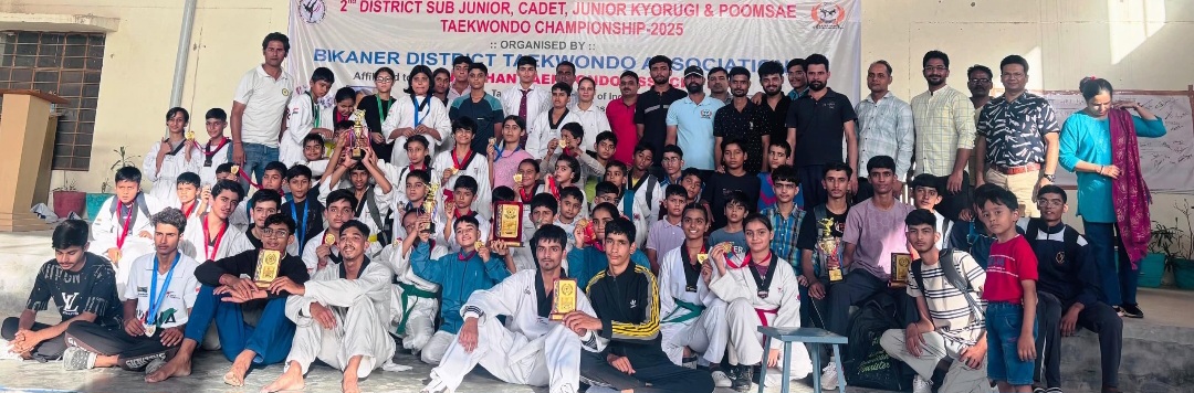 बीकानेर,जिला ताइक्वांडो एसोसिएशन द्वारा आयोजित लॉ कॉलेज में जिला स्तरीय ताइक्वांडो प्रतियोगिता में जिले के लगभग 100 खिलाड़ियों ने भाग लिया। प्रतियोगिता में ओलंपिक मार्शल आर्ट्स एकेडमी, अभिरुचि एकेडमी (आर्मी) स्काई हॉक, सनराइज ताइक्वांडो एकेडमी, अचीवर्स ताइक्वांडो एकेडमी एवं अलंकार एकेडमी के खिलाड़ियों में विभिन्न वर्ग में भाग लिया। जिसमें ओलिंपिक मार्शल आर्ट्स एकेडमी प्रथम स्थान पर, अभिरुचि एकेडमी (आर्मी) दुसरे स्थान पर एवं स्काई हॉक एकेडमी तृतीय स्थान पर रहीं। सब जूनियर कैटेगरी बालक वर्ग में नवदीप सिंह ,बालिका वर्ग में काम्या तंवर, कैडेट केटेगरी बालक वर्ग में देवकी नंदन स्वामी, बालिका वर्ग में कोमल कंवर, जूनियर कैटेगरी बालक वर्ग में रवि बिश्नोई व बालिका वर्ग में वंशिका चौधरी को सर्वश्रेष्ठ पुरस्कार से सम्मानित किया गया। लेफ्टिनेंट हरीश कुमार ने खिलाड़ियों को मेडल पहनाकर सम्मानित किया। जिला ताइक्वांडो एसोसिएशन के अध्यक्ष डॉ राकेश हर्ष, उपाध्यक्ष विक्रम सिंह ने खिलाड़ियों को आगामी राज्य स्तरीय प्रतियोगिता के लिए शुभकामनाएं दी। सचिव राजेंद्र बुडानिया ने बताया कि खिलाड़ियों ने खेल भावना का परिचय देते हुए अच्छा प्रदर्शन किया और मेडल जीतकर राज्य स्तरीय प्रतियोगिता में अपनी जगह बनाई है प्रतियोगिता के दौरान जितेन्द्र सिंह, अनिल बिशु, कोच अनूप चतुर्वेदी, कोच देवेंद्र सिंह, वीरेंद्र सिंह, अमित चौधरी, मदन सिंगर उपस्थित रहें।