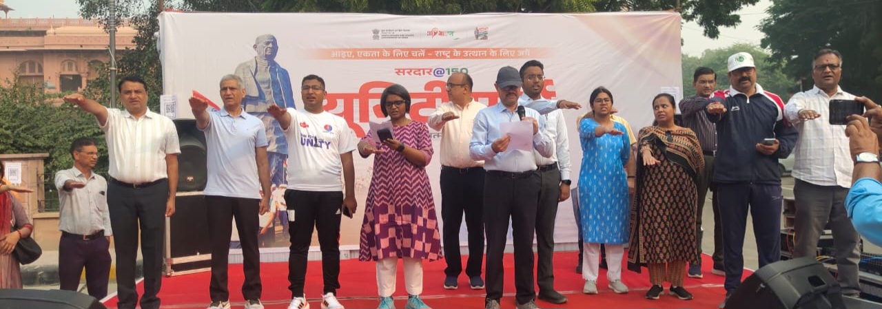 बीकानेर, सरदार वल्लभभाई पटेल के 150वें जयंती वर्ष के अवसर पर शुक्रवार को पटेल@150 यूनिटी मार्च का आयोजन हुआ। कलेक्ट्रेट परिसर से हजारों की संख्या में शहरवासियों की भागीदारी रही। प्रतिभागियों ने हाथों में तिरंगा लिए ‘भारत माता की जयघोष’ और ‘सरदार पटेल अमर रहे’ के नारों के साथ भाग लिया। राजस्थान पुलिस के बैंड ने देशभक्ति से ओतप्रोत सुमधुर स्वरलहरियां बिखेरी।