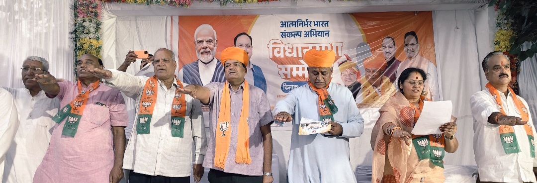इस दौरान आत्मनिर्भर भारत संकल्प अभियान के जिलासंयोजक कौशल शर्मा ने सभी प्रबुद्धजनों को आत्मनिर्भर और स्वदेशी अपनाने के लिए संकल्प दिलाया और संकल्प पत्र भरवाया ।