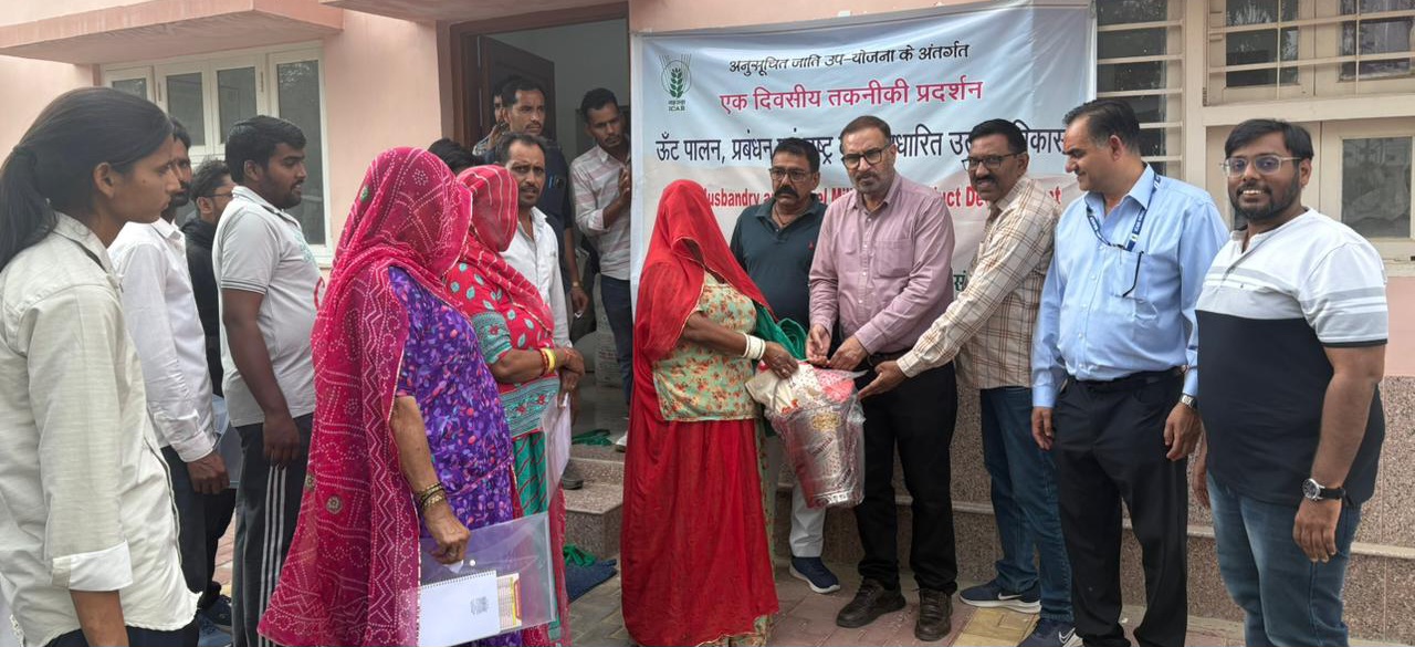 बीकानेर,भाकृअनुप-राष्ट्रीय उष्ट्र अनुसंधान केंद्र (एनआरसीसी), बीकानेर की अनुसूचित जाति उप-योजना (एससीएसपी) एवं ‘पशु आनुवंशिक संसाधनों पर नेटवर्क परियोजना (संरक्षण इकाई)’ के संयुक्त तत्वावधान में आज एक दिवसीय तकनीकी प्रदर्शन कार्यक्रम का आयोजन किया गया। इस अवसर पर बीकानेर जिले के आस-पास गांवों – सुरधणा, देशनोक, किंलचू, अक्कासर, पेमासर, गीगासर, सोआ, गुंसाईसर, सेरूणा, बदरासर, कतरियासर, नापासर, पलाना, श्रीरामसर, आदि के लगभग 155 पशुपालकों एवं किसानों की उत्साही सहभागिता रही।