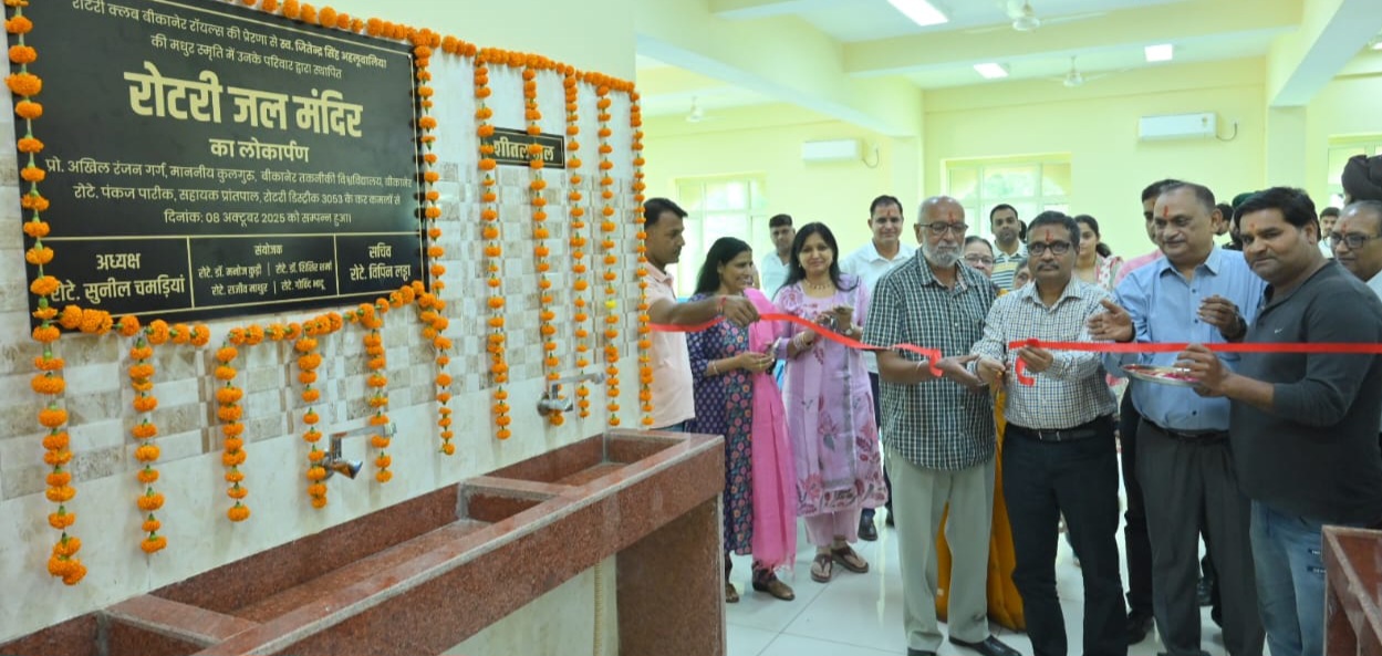 बीकानेर,बीकानेर तकनीकी विश्वविद्यालय परिसर की कैंटीन में रोटरी क्लब बीकानेर रॉयल्स की प्रेरणा से निर्मित ‘रोटरी जल मंदिर’ का लोकार्पण किया गया। यह जल मंदिर स्वर्गीय जितेन्द्र सिंह अहलूवालिया की स्मृति में उनके परिवार द्वारा बनवाया गया है। इस जल मंदिर में आधुनिक वाटर कूलर और प्यूरिफिकेशन सिस्टम के माध्यम से विद्यार्थियों और स्टाफ को स्वच्छ व ठंडे पेयजल की सुविधा मिलेगी।