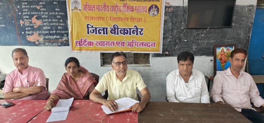 बीकानेर/अखिल भारतीय राष्ट्रीय शैक्षिक महासंघ राजस्थान विद्यालय शिक्षा की जिला कार्यकारिणी , प्रदेश पदाधिकारी,खंड अध्यक्ष मंत्री की सयुक्त बैठक प्रदेश वरिष्ठ उपाध्यक्ष रवि आचार्य के मुख्य आतिथ्य में रविवार को राजकीय उच्च माध्यमिक विद्यालय जेलवेल बीकानेर में विभिन्न सत्रों संगठन परिचय, सदस्यता अभियान,प्रवासी कार्यकर्ता एव प्रवास योजना, शैक्षिक समस्या, खंड स्तरीय प्रशिक्षण कार्य योजना पर चर्चा के साथ संपन्न हुई।
