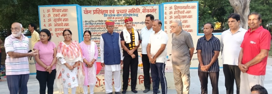 बीकानेर,योग प्रशिक्षण एवं प्रचार समिति बीकानेर के तत्वावधान में वरिष्ठ नागरिक भ्रमण पथ मैदान में स्थित योग चौकी पर योग साधक विनोद जोशी के सानिध्य में निःशुल्क योग प्रशिक्षण शिविर के निरन्तर बीस वर्ष पूरे होने के उपलक्ष्य में अपर मण्डल रेल प्रबंधक रूपेश कुमार के मुख्य आतिथ्य, जिला उद्योग संघ के अध्यक्ष डीपी पचीसिया की अध्यक्षता में स्थापना दिवस समारोह आयोजित किया गया। समारोह में स्वागत संबोधन नरेश मित्तल ने दिया। जिला उद्योग संघ के अध्यक्ष डीपी पचीसिया ने कहा बीमारी से बचने का उपाय योग है, बीस वर्ष से लगातार निःशुल्क योग प्रशिक्षण शिविर में सेवा देने हेतु योग प्रशिक्षक विनोद जोशी को साधुवाद मुख्य अतिथि अपर मण्डल रेल प्रबंधक रूपेश कुमार ने कहा बीकानेर सेवादारों भामाशाहों की नगरी है जहां योग प्रशिक्षक के रूप में विनोद जोशी द्वारा निःशुल्क सेवा देना, सीएम मूंधड़ा ट्रस्ट द्वारा विशाल हास्पीटल बनाना उल्लेखनीय उदाहरण हैं । कार्यक्रम के प्रारंभ में जैन मार्केट एसोसिएशन के अध्यक्ष के के मेहता, सुनीता गुर्जर ने फूलों से,पूर्व सरपंच उदासर रामस्वरूप ने साफा पहनाकर, एवं संस्था संरक्षक एम एल जांगिड़ एडवोकेट ने स्मृति चिन्ह देकर मुख्य अतिथि रूपेश कुमार कासम्मान किया । एमजीएस विश्व विद्यालय के हितेंद्र मारू ने धन्यवाद ज्ञापित किया। अन्त में रामदेव खत्री ने फल वितरित किए। कार्यक्रम का संचालन विनोद जोशी ने किया। इस अवसर पर योग शिक्षक लालचंद लूहानिवाल, सीडी सागर, दीपा मोडासिया, डॉ सतीश कच्छावा, महेंद्र गहलोत, लक्ष्मण भाटी, महेश शर्मा, श्रीमती दीप्ति गोयल, सुषमा यादव,मंजू जोशी, सुनीता वर्मा, अभिलाषा शर्मा, बलवन्त राजपुरोहित, राजेन्द्र राठौड़, अनिल शर्मा, कमलेश खत्री, संजय मोदी, सूरज खत्री, भुवनेश शर्मा, कालूराम, रामेश्वर सिंह आदि उपस्थित रहे।