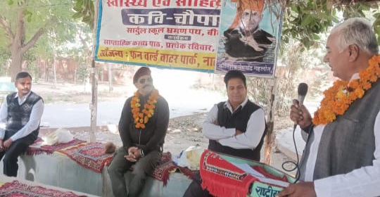 बीकानेर,राष्ट्रीय कवि चौपाल 546 वीं श्रंखला आंतकवाद खिलाफ हमारे जवान को समर्पित रही। आज के कार्यक्रम की अध्यक्षता में कुलदीप गोतम, मुख्य अतिथि में विजय कोचर विशिष्ट अतिथि में भानू प्रताप सिंह देशनोक व सरदार अली परिहार सुशोभित हुए। रामेश्वर साधक ने कार्यक्रम शुभारम्भ स्व बौद्धिक में कहा कि.. हीरो वो नहीं नचनिये – गवनिये जो फिल्मों में कहे जाते हैं, राष्ट्रीय नायक है वो,भर जुनून..आंतकियो को मार नर से नारायण बन जाते हैं। कर्म राष्ट्र सेवा, धर्म आतंकी को मारना, घर परिवार को भूल जाते हैं, कहां परवा जीने की राष्ट्रीय हित में फांसी तक झूल जाते हैं