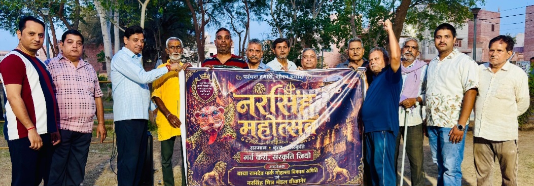बीकानेर,शहर में आयोजित होने वाले ‘नरसिंह महोत्सव 2026’ के अंतर्गत 29 अप्रैल को बाबा रामदेव पार्क में शाम 6 बजे से ‘नरसिंह मेला’ आयोजित किया जाएगा। मेले में पारंपरिक नृत्य, सांस्कृतिक प्रस्तुतियां एवं विभिन्न आकर्षक कार्यक्रम आयोजित होंगे।