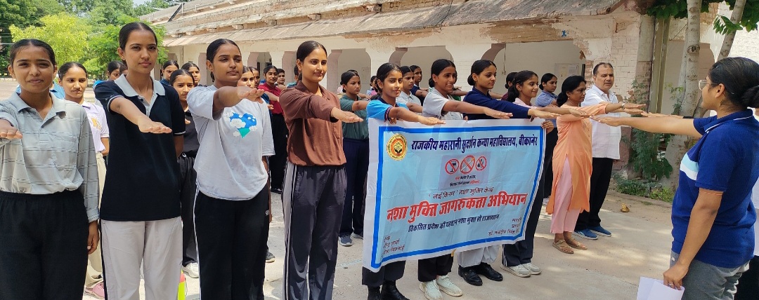 बीकानेर,राजकीय महारानी सुदर्शन कन्या महाविद्यालय बीकानेर में नई किरण नशा मुक्ति केंद्र ,एन सी सी एवं एन एस एस इकाई के तत्वावधान में महाविद्यालय में नशा मुक्ति संदेश के तहत ऑनलाइन एवं ऑफलाइन शपथ दिलाई गई। नई किरण नशा मुक्ति सखि के रूप में चयनित एन सी सी छात्रा विजय श्री एवं प्रेरणा के द्वारा नशा मुक्त भारत अभियान से संबंधित जानकारी देकर एन सी सी छात्राओं को नशा मुक्ति की शपथ दिलाई गई । महाविद्यालय में नशा मुक्ति की जागरुकता से संबंधित विविध गतिविधियों के तहत nss इकाई प्रभारी अंजू सांगवा एवं नशा मुक्ति केंद्र प्रभारी रवींद्र शर्मा के द्वारा छात्राओं को नशे के दुष्प्रभाव एवं रोकथाम के उपाय विषय पर निबंध प्रतियोगिता आयोजित की गई। महाविद्यालय में विभिन्न कक्षाओं में भी छात्राओं को नशा मुक्ति की जागरुकता से संबंधित जानकारी देकर शपथ दिलाई गई कार्यक्रम में महाविद्यालय में स्थापित नई किरण नशा मुक्ति केंद्र के संरक्षक प्राचार्य डॉ नवदीप सिंह बैस एनसीसी प्रभारी रिचा मेहताएवं दर्शन शास्त्र विषय प्रभारी रविशंकर व्यास का सक्रिय सहभागिता रही।