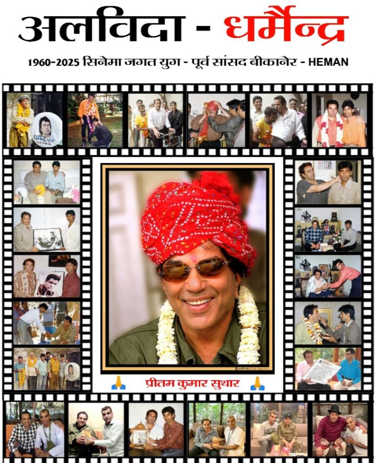 बीकानेर,बीकानेर लोकसभा सीट से सांसद रहे सिने अभिनेता धर्मेंद्र के निधन से देश सहित...