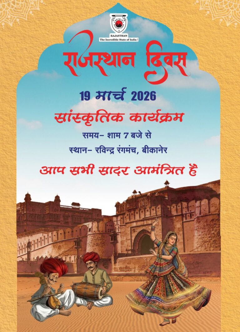बीकानेर,राजस्थान दिवस के अवसर पर 19 मार्च को रवींद्र रंगमंच में भव्य सांस्कृतिक कार्यक्रम...