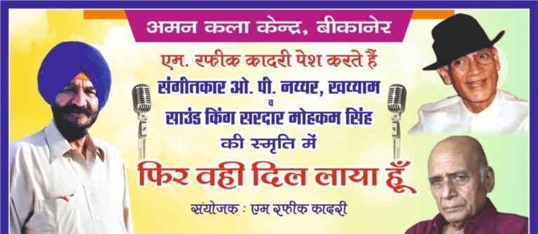 बीकानेर,फिर वही दिल लाया हूं 16 जनवरी को अमन कला केंद्र द्वारा 16 जनवरी...