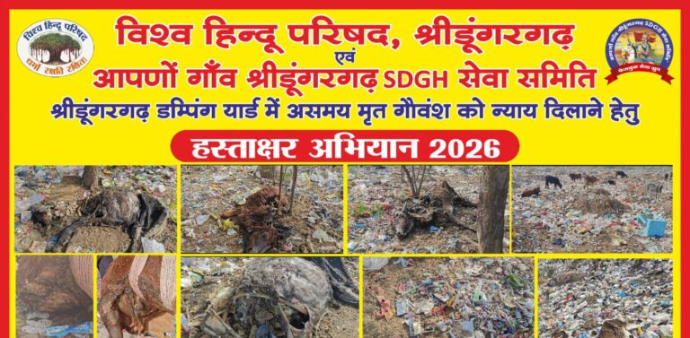 श्रीडूंगरगढ़,बीकानेर,आपणो गांव श्रीडूंगरगढ़ समिति के राज सुथार ने बताया कि विश्व हिन्दू परिषद श्रीडूंगरगढ़...