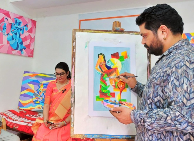 बीकानेर,शब्दमय रंग संस्थान की कला श्रृंखला 10 में मुख्य अथिति कवियत्री विनता शर्मा रहे जिनकी कविता अस्तित्व बौद्ध के मुखोटे” के वाचन पर चित्र संयोजन चित्रकार राम कुमार भादाणी द्वारा किया गया। पेंटिंग्स में कविता की गहराइयों को उकेरने की अद्वितीय क्षमता है, जो कला दर्शकों को मंत्रमुग्ध कर देती है।