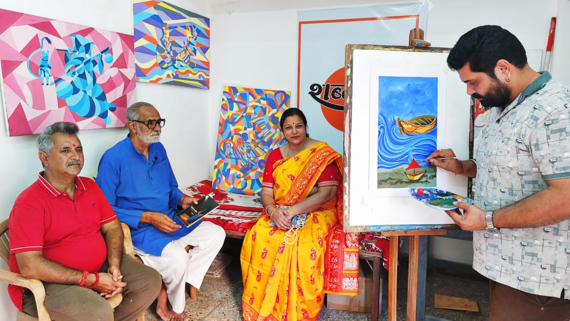 चित्रकार धर्मा स्वामी ने बताया कि भादाणी द्वारा बनाई पेंटिंग जो कई दर्शकों को आकर्षित कर रही है।