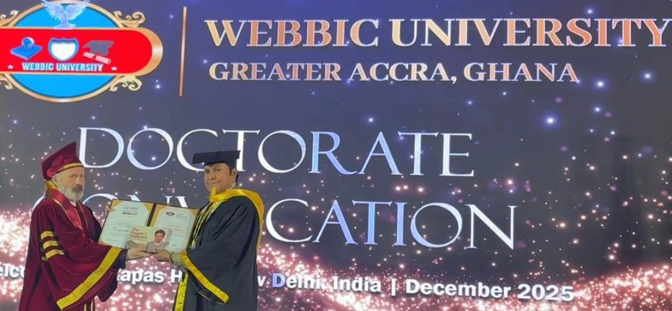 बीकानेर,आज़ आईटीसी वेलकम होटल नयी दिल्ली में आयोजित एक समारोह में “वेबिक यूनिवर्सिटी”, घाना (Webbic University, Ghana) के रजिस्ट्रार डॉ. इसाक एस के अहक द्वारा राजस्थान प्रदेश कांग्रेस कमेटी के प्रवक्ता राय सिंह गोदारा को उनके द्वारा सामाजिक क्षैत्र में विशेष योगदान और राजनीतिक चेतना के लिए किए गए “जन-जागरण” हेतु सुधारात्मक सराहनीय कार्यों और अथक प्रयासों के मध्य नज़र “सामाजिक एवं राजनीतिक संचार विषय “ में डॉक्टरेट की मानद उपाधि प्रदान की गई। इस अवसर पर डॉ राय सिंह गोदारा ने उनको सम्मानित किए जाने पर विश्वविद्यालय परिवार और वेबिक यूनिवर्सिटी के कुलपति डॉ. फेलिक्स ओ डीजान और कुल सचिव डॉ. इसाक एस के अहक का हृदय से आभार व्यक्त किया है।