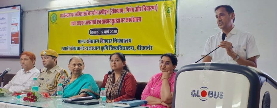 बीकानेर,कार्यस्थल पर महिलाओं का यौन उत्पीड़न (रोकथाम , निषेध और निवारण) तथा साइबर अपराध और साइबर सुरक्षा पर एक दिवसीय कार्यशाला एसकेआरएयू स्थित मानव संसाधन विकास सभागार में सोमवार को आयोजित की गई। कार्यशाला में महिला अधिकारिता विभाग साइबर थाना पुलिस, सहित विषय विशेषज्ञों द्वारा विद्यार्थियों से संवाद कर विभिन्न चुनौतियों, कानूनी प्रावधानों की जानकारी दी गई। विश्वविद्यालय के रजिस्ट्रार डॉ देवाराम सैनी ने कहा कि सभी संस्थानों में आवश्यक रूप से आईसीसी (आंतरिक शिकायत समिति) का गठन हो। संस्थान प्रभारी स्वयं पोस एक्ट के प्रावधानों को जानें तथा नियमित रूप से इन समितियों की बैठक आयोजित हों व रिपोर्ट भेजी जाए। समिति के गठन की सूचना बोर्ड पर आवश्यक रूप से चस्पा की जाए। महिलाएं कार्यस्थल पर सुरक्षित महसूस करें इसके लिए सभी कार्मिक नैतिक बल और निष्ठा के साथ अपना कार्य करें। डॉ सैनी ने कहा कि बढ़ता साइबर क्राइम एक बड़ी चुनौती है । नागरिकों की सक्रिय सतर्कता से ही साइबर क्राइम रोके जा सकते हैं। उन्होंने सभी विद्यार्थियों से उपलब्ध साइबर सुरक्षा सेवाओं की जानकारी रखने और उनका उपयोग करने की अपील की। अनुसंधान निदेशक डॉ एन के शर्मा ने कहा कि साइबर क्राइम वर्तमान में बड़ी चुनौती है नागरिक की सतर्कता से ही इस अपराध से बचा जा सकता है। सभी सतर्क रहें और अपनों को सतर्क रखें।
