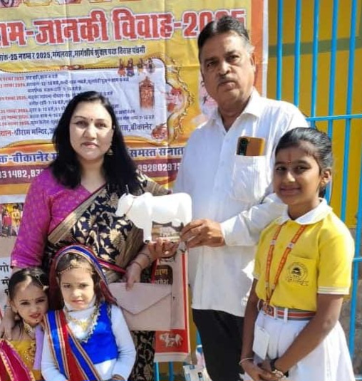 सर्व समाज जनसेवक संगठन द्वारा शहर की विभिन्न कच्ची बस्तियों के बच्चों को पढ़ने के लिए प्रेरित करने वाली संस्थान की प्रदेश अध्यक्ष अर्पिता गुप्ता को गौमय गुल्लक की मूरत – गौ धन मित्र- ने भेंट की । इस अवसर पर महेंद्र जोशी ने कहा हमारा उद्देश्य प्रत्येक बच्चा शिक्षित बने क्योंकि यही हमारे देश का भविष्य है ।गौमय गुल्लक के माध्यम से बच्चों में संस्कार मिलेगा साथ ही गौ सेवा हेतु 1- 1 रुपए संग्रह कर गौ सेवा की जा सकती है और गौ माता के लिए सेवा की भावना बचपन से ही उत्पन्न होने लगेगी ।