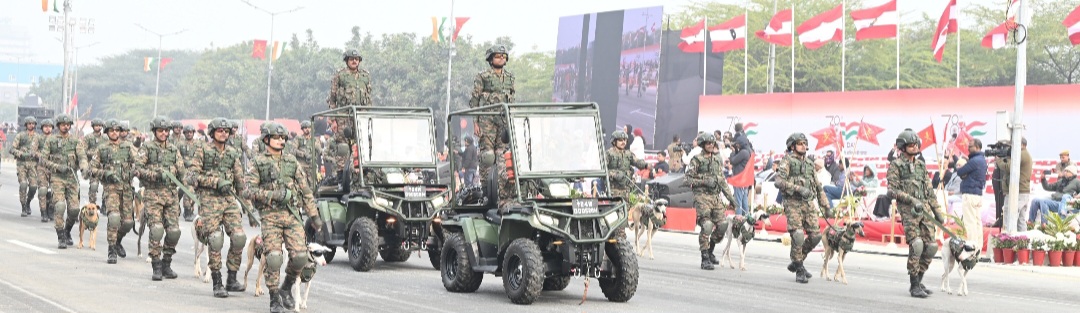 09 जनवरी की परेड भारत की सैन्य शक्ति का जीवंत प्रमाण बनी। तोपखाने, हल्के टोही वाहन, टैंक, उन्नत पैदल सेना युद्ध वाहन, सेना वायु रक्षा मिसाइल एवं तोप प्रणालियाँ तथा निगरानी ड्रोन – सभी आधुनिक हथियार प्रणालियाँ तकनीकी उत्कृष्टता का प्रदर्शन करती हुई परेड मार्ग पर आगे बढ़ीं। युद्ध, खोज एवं बचाव कार्यों के लिए प्रशिक्षित सेना के कैनाइन वारियर्स अनुशासित सतर्कता के साथ मार्च करते दिखाई दिए, जो आधुनिक भारतीय सेना की बहुआयामी क्षमताओं का प्रतीक हैं। आकाश में सेना विमानन के हेलीकॉप्टरों और भारतीय वायु सेना के लड़ाकू विमानों ने सेकेंड-टू-सेकेंड समन्वय के साथ भव्य फ्लाई-पास्ट किया। यह आकाशीय सलामी राष्ट्रभक्ति की भावना से ओतप्रोत थी। पैरा-मोटर प्रदर्शन एवं मोटरसाइकिल करतबों ने परेड में साहस, गति और रोमांच का संचार किया, जो भारतीय सेना की शारीरिक दक्षता और नवाचार के प्रति प्रतिबद्धता को दर्शाता है।