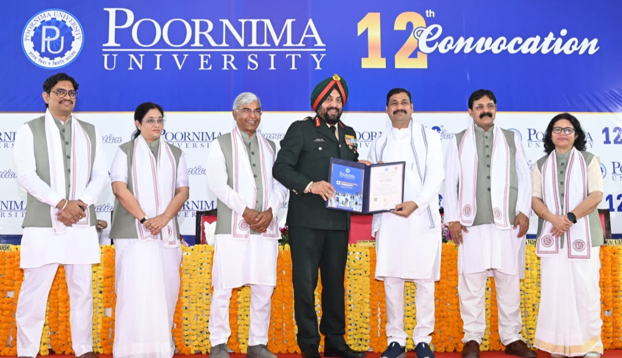 बीकानेर,जयपुर,लेफ्टिनेंट जनरल मनजिंदर सिंह, आर्मी कमांडर, सप्त शक्ति कमांड ने 20 दिसंबर 2025 को पूर्णिमा विश्वविद्यालय, जयपुर के दीक्षान्त समारोह में मुख्य अतिथि के रूप में भाग लिया। उनका स्वागत और सम्मान विश्वविद्यालय के अध्यक्ष और वरिष्ठ अधिकारियों द्वारा किया गया।