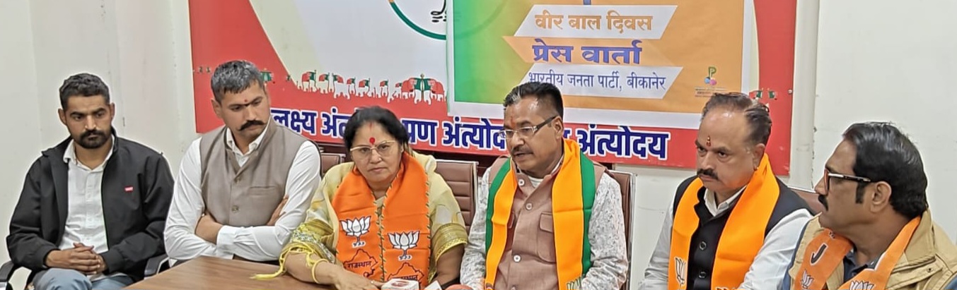 बीकानेर,भारतीय जनता पार्टी, बीकानेर द्वारा आज जिला कार्यालय में एक प्रेस वार्ता का आयोजन किया गया। इस वार्ता में आगामी वीर बाल दिवस 26 दिसंबर और सुशासन दिवस 25 दिसंबर के उपलक्ष्य में आयोजित होने वाले कार्यक्रमों की विस्तृत जानकारी साझा की देहात जिलाध्यक्ष श्याम पंचारिया ने प्रेस वार्ता को संबोधित करते हुए बताया गुरु गोविंद सिंह जी के चारों साहिबजादों—बाबा अजीत सिंह जी, बाबा जुझार सिंह जी, बाबा जोरावर सिंह जी और बाबा फतेह सिंह जी के सर्वोच्च बलिदान को नमन किया। उन्होंने कहा कि साहिबजादों ने धर्म और राष्ट्र की रक्षा के लिए जिस वीरता का परिचय दिया, वह पूरे विश्व के लिए प्रेरणा है।