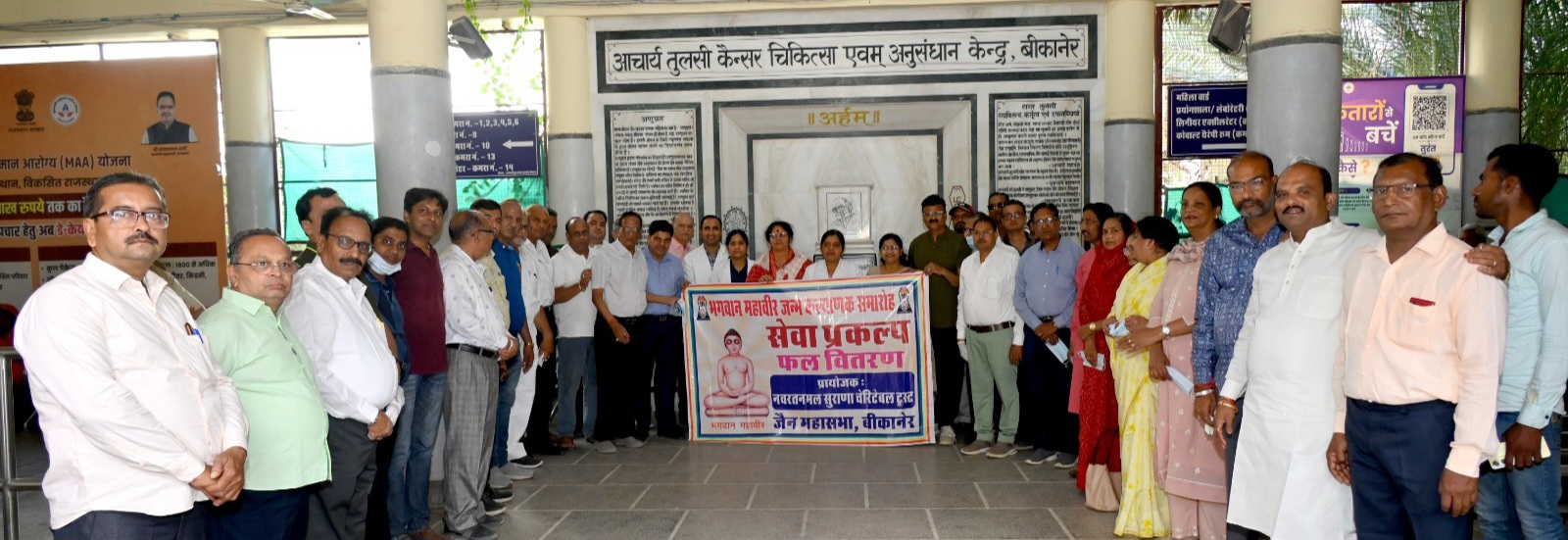 भगवान महावीर के करुणा और प्राणी मात्र की सेवा के संदेश को जन-जन तक पहुँचाने के लिए कार्यकर्ताओं ने शहर के प्रमुख सेवा केंद्रों पर फल वितरित किए। इनमें शामिल थे। आचार्य तुलसी रीजनल कैंसर रिसर्च सेंटर एवं ट्रॉमा सेंटर, अनाथालय और मूक-बधिर आश्रम ,अंध विद्यालय और अपना घर आश्रम-2 (रानी बाजार)