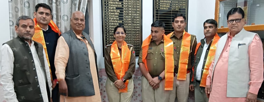 *आज थाना धिकारी महोदया सविता ढाल के साथ राकेश मीना एएसआई,संदीप कुमार हैड कांस्टेबल,शिवराज बिश्नोई कॉन्स्टेबल, राजेश कॉन्स्टेबल,लीलाधर कॉन्स्टेबल का गोल्डन दुपट्टा पहना कर सम्मान किया.*