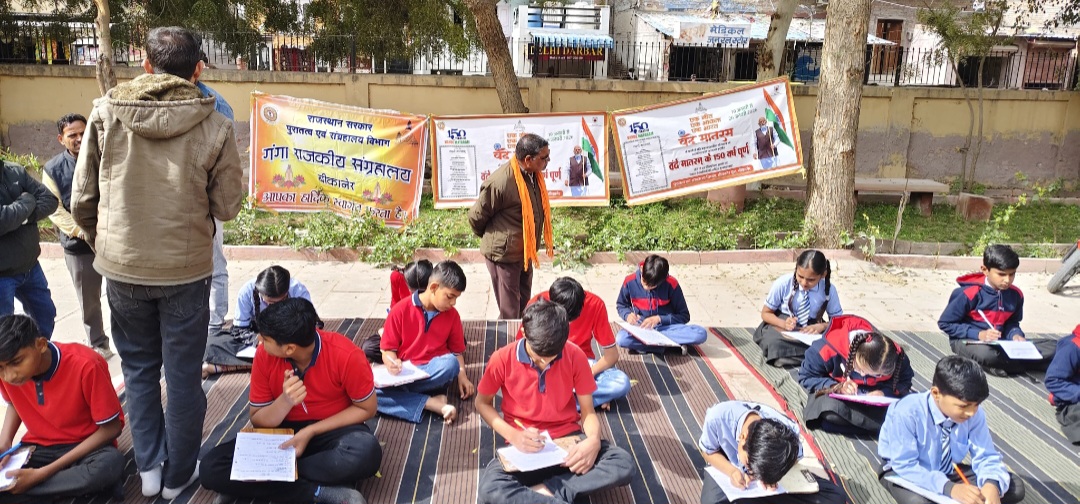 बीकानेर, राष्ट्रगीत वंदेमातरम के 150 वर्ष पूर्ण होने के अवसर आयोजित हो रहे कार्यक्रमों की श्रृंखला में पुरातत्व एवं संग्रहालय विभाग द्वारा स्कूली विद्यार्थियों को संरक्षित स्मारक राव बीकाजी की टेकरी का भ्रमण करवाया गया। यहां विद्यार्थियों के लिए राष्ट्रगीत एवं राष्ट्रगान से संबंधित प्रश्नोत्तरी एवं लेख प्रतियोगिता का आयोजन किया गया।प्रतियोगिता में प्रथम तीन स्थान पर आने वाले विद्यार्थियों को गणतंत्र दिवस पर पारितोषिक प्रदान किया जाएगा। इस अवसर पर संग्रहाध्यक्ष राकेश शर्मा, शंकर दत्त हर्ष, मनोहर सिंह, राखी मोहता एवं शुभम उच्च माध्यमिक विद्यालय के व्यवस्थापक मांगीलाल मौजूद रहे।