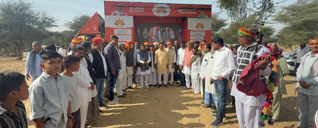 बीकानेर,पुगल- आज पंचायत समिति पुगल के कुम्भारवाला ग्राम पंचायत में राजस्थान सरकार के दो वर्ष के उपलक्ष्य विकास रथ पहुंचने पर खाजूवाला विधायक डॉ विश्वनाथ मेघवाल ने कुम्हारवाला ग्राम पंचायत में पहुंचकर “नव उत्थान, नव राजस्थान” के तहत ग्रामीण समस्या समाधान शिविर का अवलोकन किया और सरकार के दो वर्षों की उपलब्धियां बताई भजनलाल सरकार के उपलब्धियां की विकास पुस्तिका वितरण की