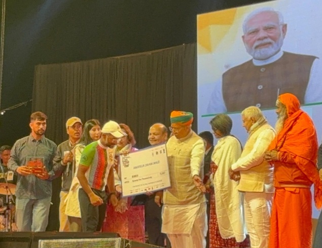 बीकानेर,केंद्रीय कानून मंत्री अर्जुन राम मेघवाल की पहल पर सांसद खेल महोत्सव 2025 के तहत देश में पहली बार बीकानेर में आयोजित हुई 200 किमी लंबी ‘वेदांता टूर डी थार’ अंतर्राष्ट्रीय साइक्लिंग रेस का समापन समारोह रविवार देर शाम रायसर में आयोजित किया गया। केंद्रीय कानून मंत्री अर्जुन राम मेघवाल के मुख्य आतिथ्य में आयोजित किए गए पुरस्कार वितरण समारोह में फीट इंडिया के डिप्टी डायरेक्टर जनरल मयंक श्रीवास्तव, डायरेक्टर नदीम अहमद डार, श्रीडूंगरगढ़ विधायक ताराचंद सारस्वत, जिला कलेक्टर नम्रता वृष्णि, बीडीए कमिश्नर अपर्णा गु्प्ता, लालेश्वर महादेव मंदिर शिवबाड़ी के महंत विमर्शानंद, हल्दीराम ग्रुप के चेयरमैन मनोहर अग्रवाल, एलएलसी इंडिया के प्रोजेक्ट डायरेक्टर विजय कुमार, बीकाजी ग्रुप चेयरमैन दीपक अग्रवाल ने विजेताओं को पुरस्कृत किया। कार्यक्रम में सिंगापुर के कानून मंत्री एडविन टोंग ने लाइव मैसेज दिया।