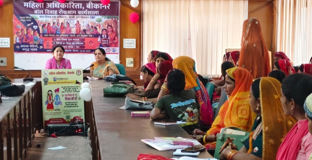 बीकानेर,जिला प्रशासन एवं महिला अधिकारिता विभाग के संयुक्त तत्वावधान में सोमवार को पंचायत समिति परिसर सभागार में बाल विवाह रोकथाम अधिनियम 2006 विषय पर द्विपक्षीय संवाद एवं कार्यशाला का आयोजन किया गया। कार्यक्रम में आमजन, महिलाओं एवं किशोरी बालिकाओं ने भाग लिया।